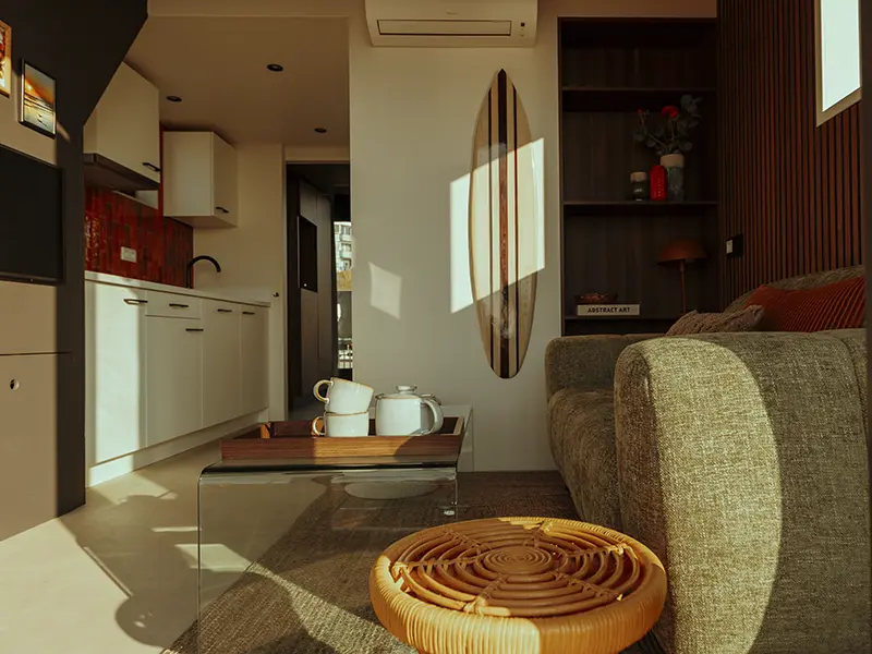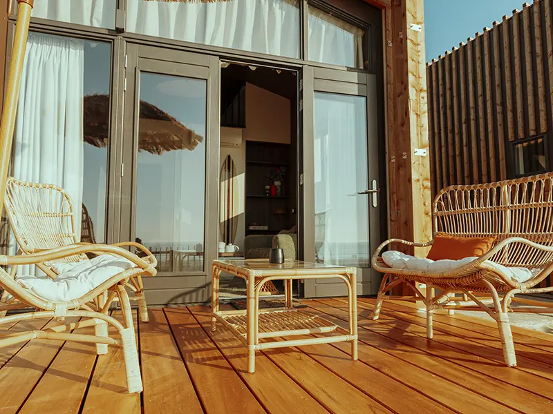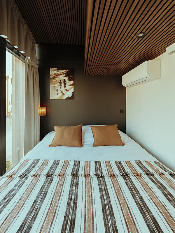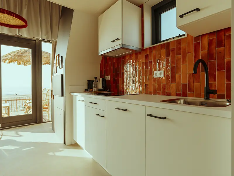 De huisjes zijn stijlvol ingericht met een slaapkamer voor twee personen en een entresol met extra tweepersoonsbed. Er is een moderne badkamer met douche en toilet. De keuken beschikt over alle gemakken, waaronder een koelkast, vaatwasser en Nespresso-apparaat. Vanuit de veranda met zitje kijk je uit over zee, terwijl gratis wifi, airconditioning en verwarming zorgen voor comfort in elk seizoen. Handdoeken en beddengoed zijn inbegrepen, zodat je zorgeloos kunt genieten.